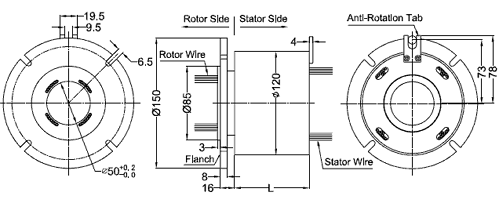 - Rotor and stator lead exits gold alloy brush,Gold plated rings