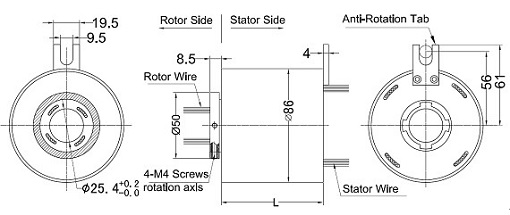 CAUTION: Because of possible geometric mismatching between the customer’s application and the slip ring, "hard mounting" of both ends of the slip ring (i.e., securing the rotor and stator such that there is NO floating during operation) is not recommended and may cause premature failure.