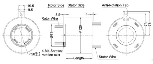 CAUTION: Because of possible geometric mismatching between the customer’s application and the slip ring, "hard mounting" of both ends of the slip ring (i.e., securing the rotor and stator such that there is NO floating during operation) is not recommended and may cause premature failure.