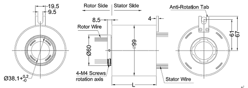 CAUTION: Because of possible geometric mismatching between the customer’s application and the slip ring, "hard mounting" of both ends of the slip ring (i.e., securing the rotor and stator such that there is NO floating during operation) is not recommended and may cause premature failure.