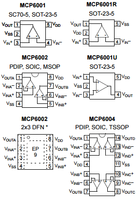Операционный усилитель MCP6001/2/4 выпускается в двух вариантах для промышленного и расширенного диапазона рабочих температур с диапазонами напряжений питания от 1,8 В до 6,0 В.